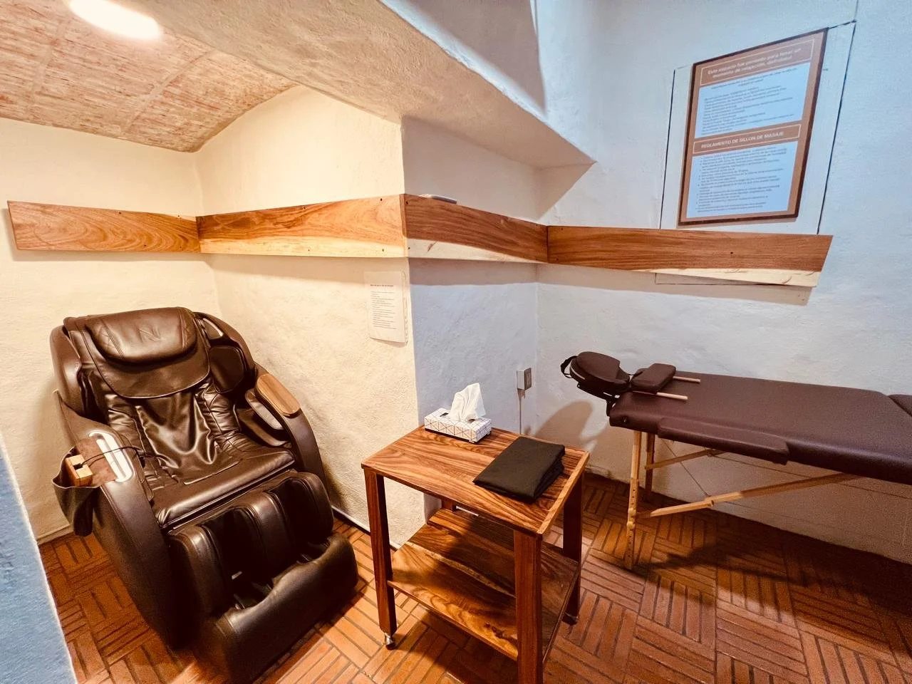 Desconéctate del estrés con nuestros sillones de masajes, el ambiente y la iluminación cálida crean un espacio perfecto para relajar. Al finalizar el masaje, te sentirás revitalizado y en armonía, listo para continuar disfrutando de la belleza y cultura de Oaxaca.